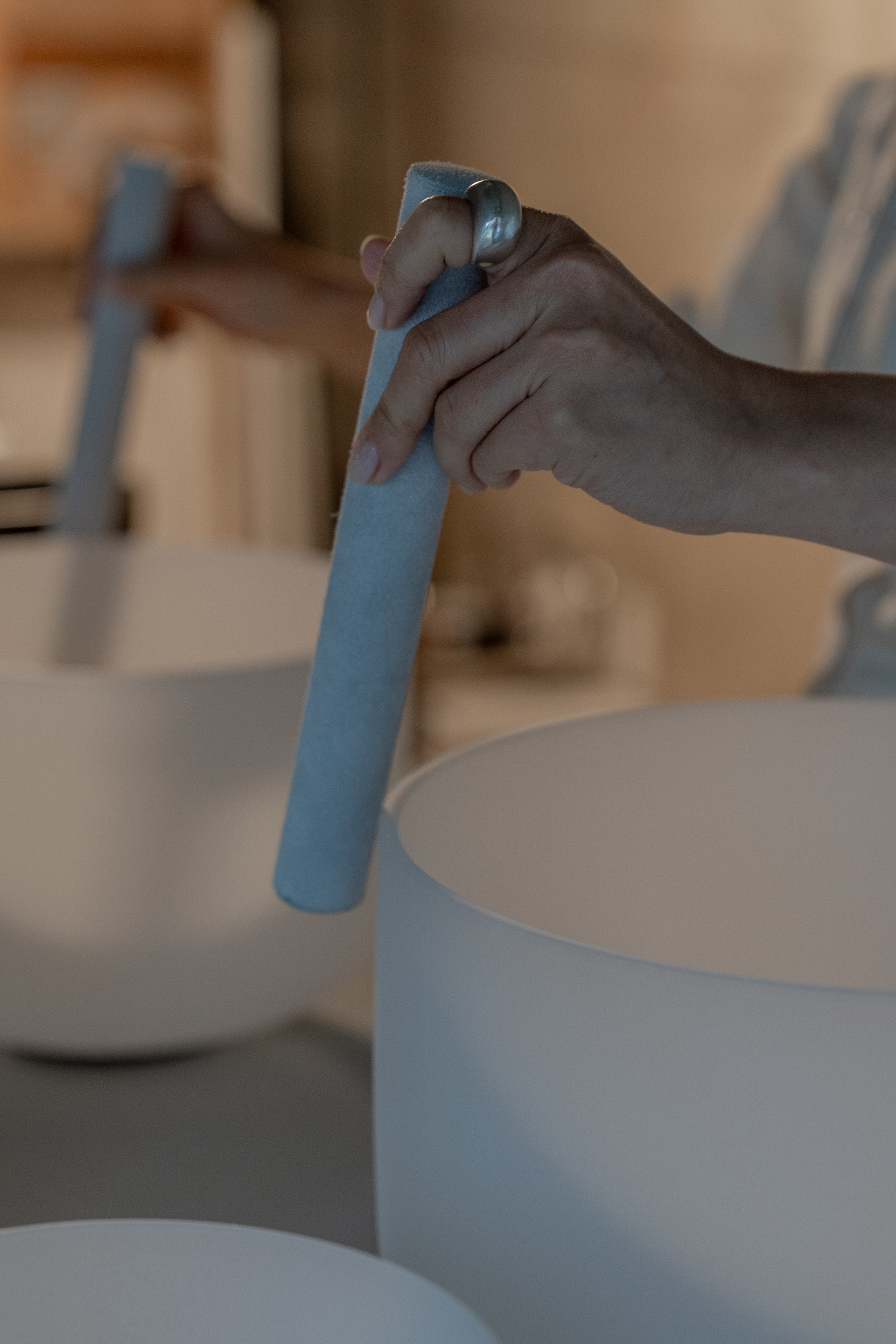 고순도 퀄츠(Quartz Crystal) 로 제작된 싱잉볼은 맑고 투명한 울림을 만들어 공간과 몸의 에너지를 부드럽게 정화합니다.